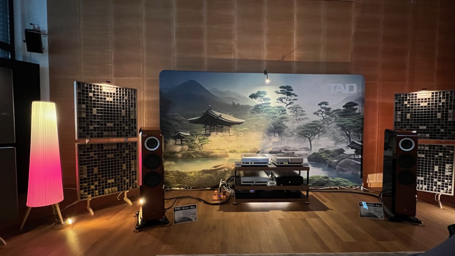Wie alle wissen ist dieser Blog ein persönlicher, spiegelt also nur meine Meinung wieder und keineswegs ein absolutes Urteil. Der Raum der mich sofort „geflashed“ hat, wie man heute so treffend sagt, war TAD. Optisch 1 A mit wunderschöner „Titelseite“ , gedämpfter Beleuchtung. „Room treatment“ vom Feinsten , also sinnvoller Kampf gegen zuviel Reflexion, dezente Dispersion wo Überdämpfung schaden würde. Ein paar Lautsprecher, die unangestrengt einfach wunderbare Musik gespielt haben, egal welcher Provenienz. Elektronik die einfach aus dem Weg geht und zur Verfügung stellt was gebraucht wird. Details a la Verteilerstecker aus Kupfer lassen erahnen wieviel Detailarbeit nötig war um dieses Paradies zu gestalten.