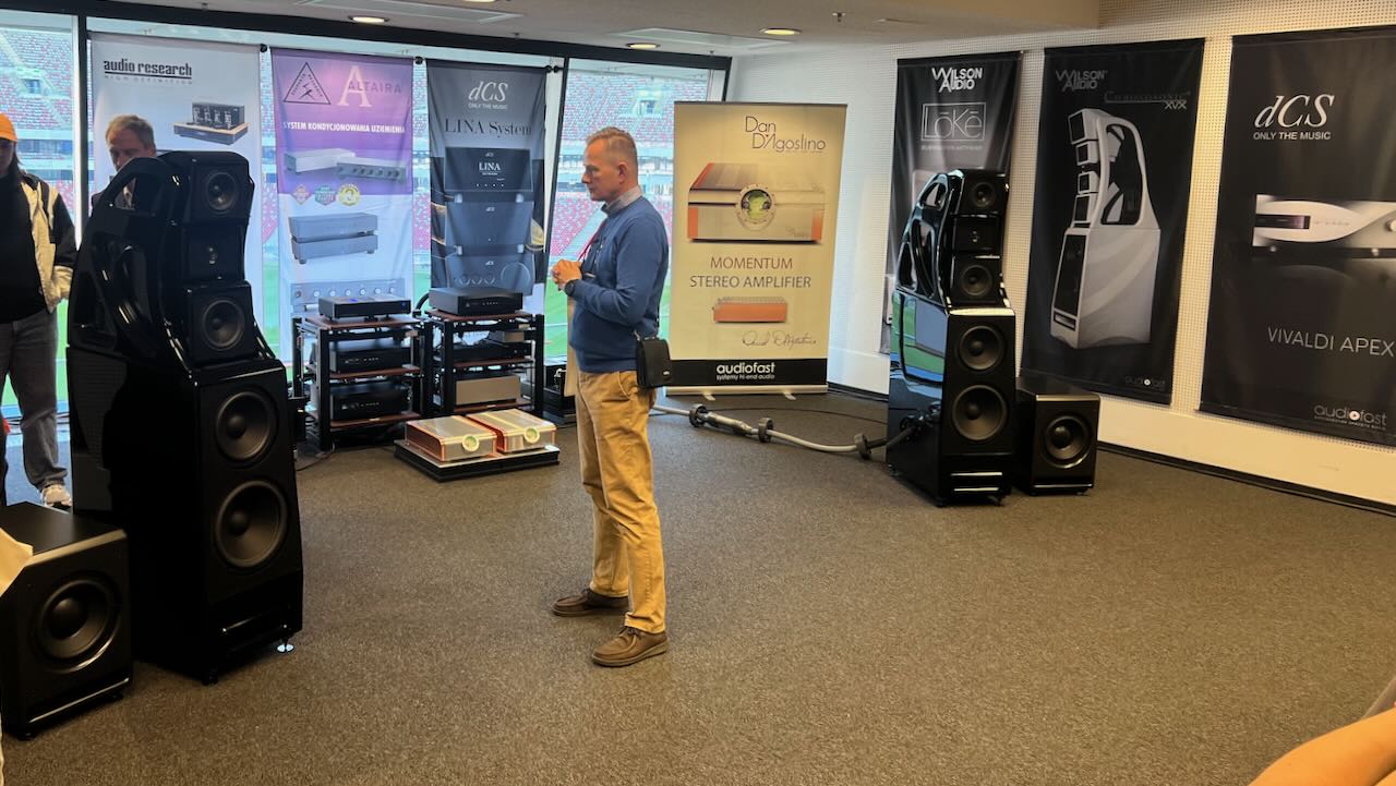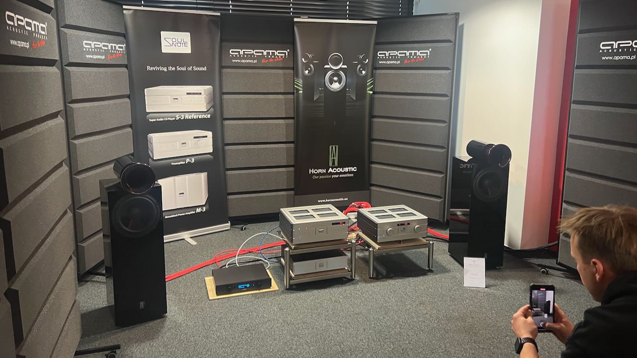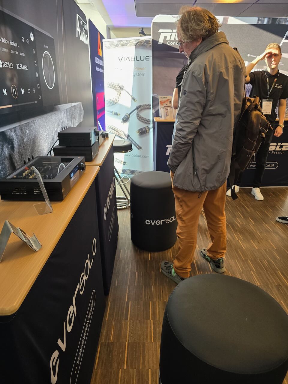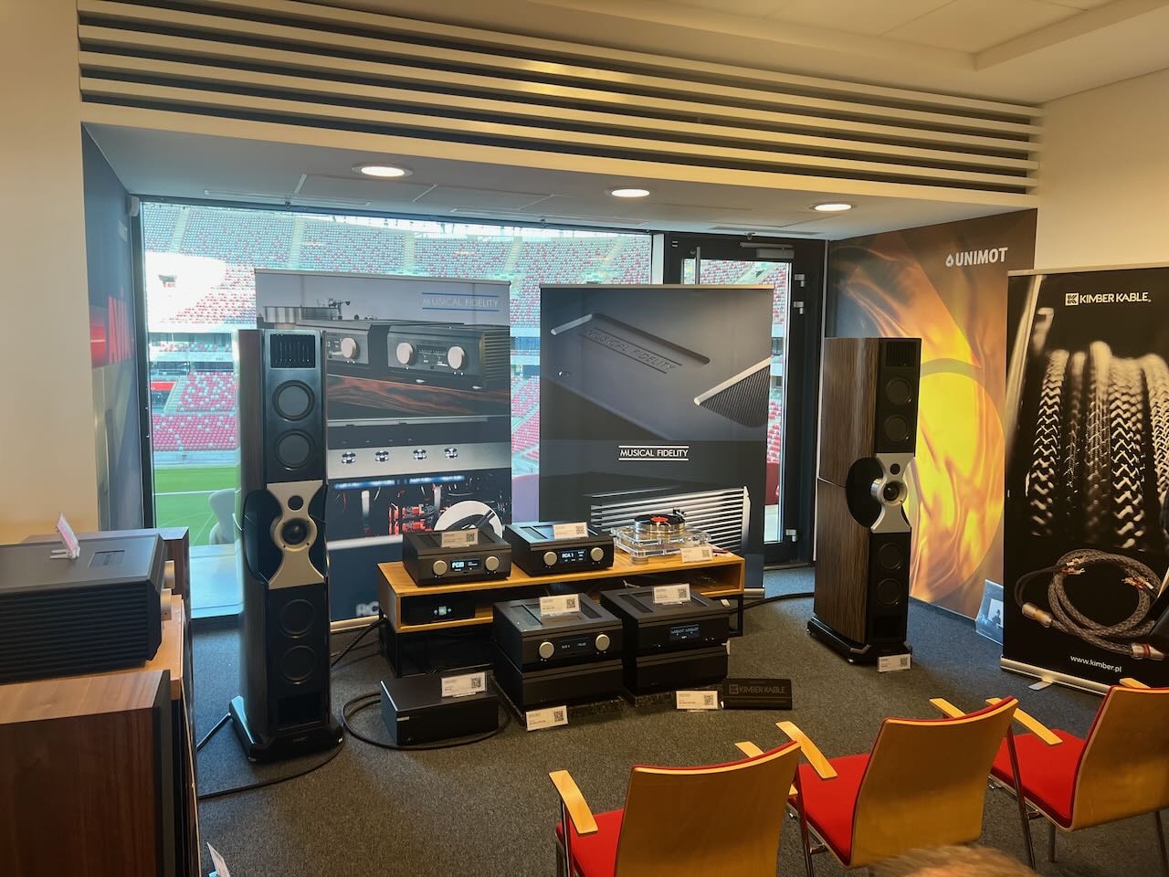 Groß und mächtig liegt das Stadion direkt an der Weichsel, dem größten Fluss der Warschau durchquert. Es liegt auch direkt an der Tram-Linie und ist so einfach zu erreichen. Die Räume und Gänge eignen sich durch die massive Bauweise hervorragend für eine HiFi-Show. Zwar sind anfangs die Zugänge zum Westteil und Ostteil nicht ganz einfach zu überblicken ( am Freitag muss man durch die Tiefgarage von einem zum anderen wechseln), aber insgesamt ist die Location viel besser als ursprünglich erwartet. Aber sehen sie selbst, was alles geboten wurde. Auffallend waren die ungezählten Plattenstände, wo man von der 2 € Polish Jazz aus den 60ern bis zur 300 € Beatles Gesamtausgabe alles geboten bekam. Und die riesigen Kopfhörer- Ausstellungsflächen , in denen vom winzigen In-Ear bis zum Mega-Röhrenverstärker und dazugehörendem Planar-Over-Ear eine geradezu unfassbare Auswahl probieren konnte.