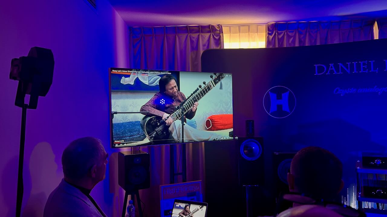 Mark Levinson eröffnet mit der Bemerkung, dass wir sicher schon alle Hits der Audiophilie gehört haben, und er deshalb ein wenig andere Musik bieten will, indische Musik, die ihn seit seiner Jugend immer angezogen hat. Und er spielt einen Raga. Und jetzt kommt es: Er spielte von YOUTUBE. Das Entsetzen bei den ca 30 Zuhörern, durchgehend Audiophile, war spürbar. Wie kann man – „Apage Satanas“ – auf einer hochwertige Anlage einen komprimierten Youtube Track spielen. Und plötzlich klingt die Sitar schön wie nie zuvor, atmet, schwelgt in den Harmonien, welche die sanft gespannten Saiten erzeugen können. Und wir schauen uns ungläubig an und verstehen die Welt nicht mehr. Aber frohen Herzens sind alle Anwesenden.