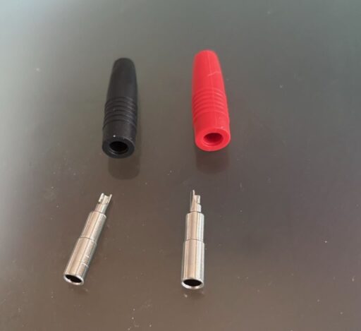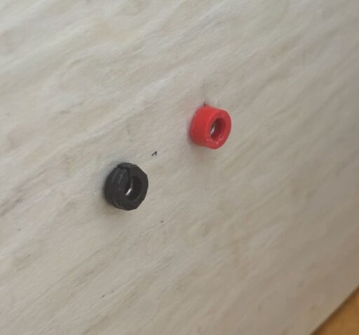 Meine Betongehäuse der Rauna-Lautsprecher haben sich als ideale Partner für die Marcaudio Breitband Lautsprecher herausgestellt. Ein absolut „totes“ Gehäuse ist ideal , besonders wenn es als Transmissionline Ausführung des Bereich unter 150 Hz noch unterstützt. Seiten- und Front-High-Boxen , welche vor allem den Raum erzeugen brauchen nicht wirklich Anteile unter 100 Hz , insoferne ist der Gehäuseeinfluss nicht ganz so wichtig. Schalltot sollen sie sein, daher habe ich die MDF Platten mit Anti-Dröhnfolie aus dem Autozubehörbereich verklebt. Die Anschlüsse der Lautsprecherstecker sollen so klein als möglich sein, viel Metall besonders magnetisches würde nur störend wirken. Daher hier nach einigen Versuchen die Minimalversion.