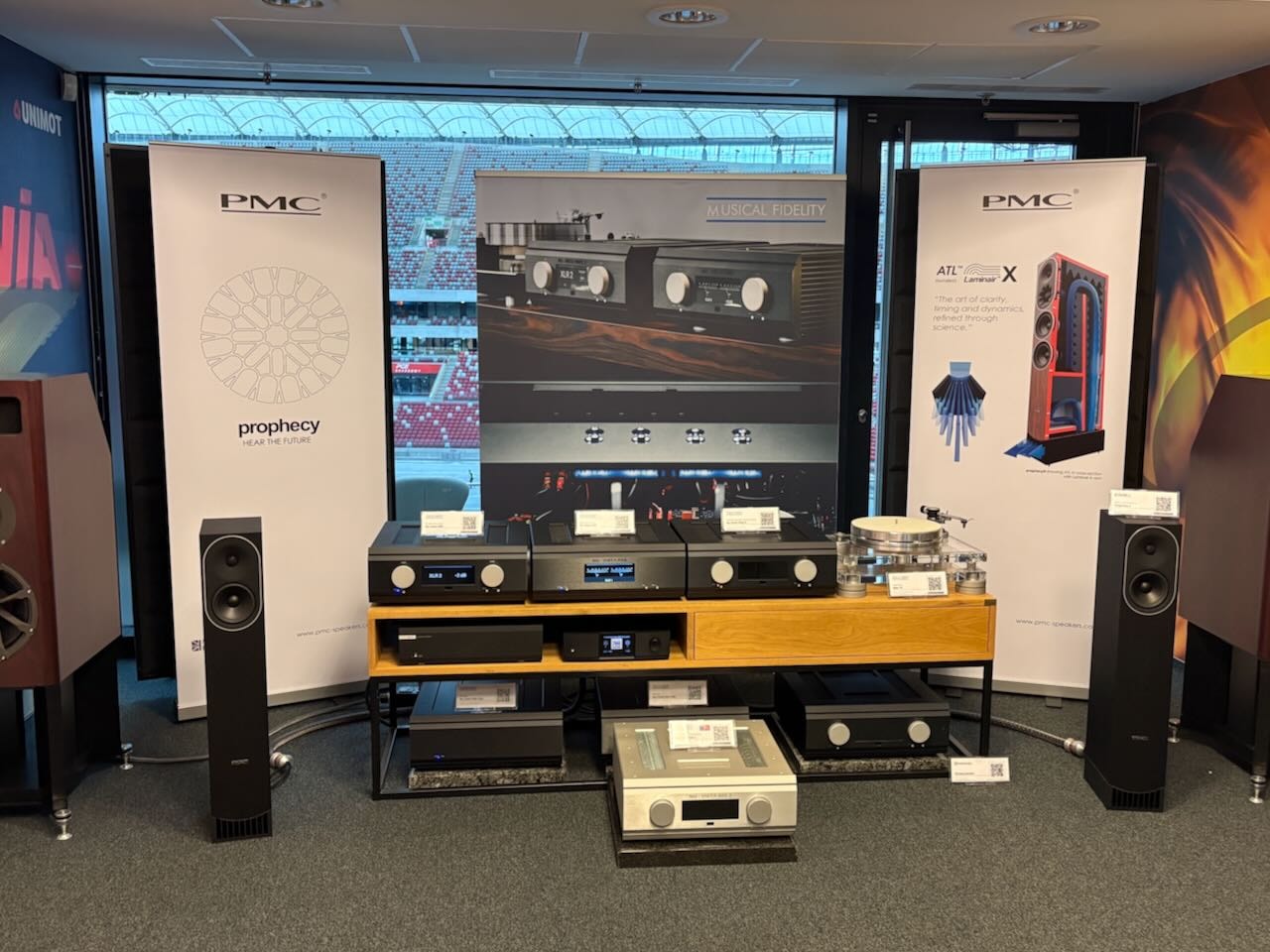 Kaum weniger spektakulär die Vorführung der kleinen Lautsprecher von PMC, den englischen Studio-Spezialisten. Aus fast winzigen Standboxen strömt eine Power, die die meisten anderen auf der Messe neidisch machen muss. Ebenfalls präzise und sauber bis in tiefste Regionen. Dabei auch bei leiseren Pegeln wunderschön auflösend. Aus dieser Schmiede könnten meine nächsten Lautsprecher kommen.