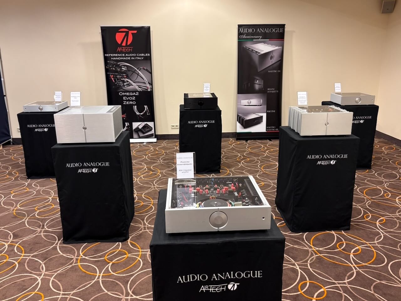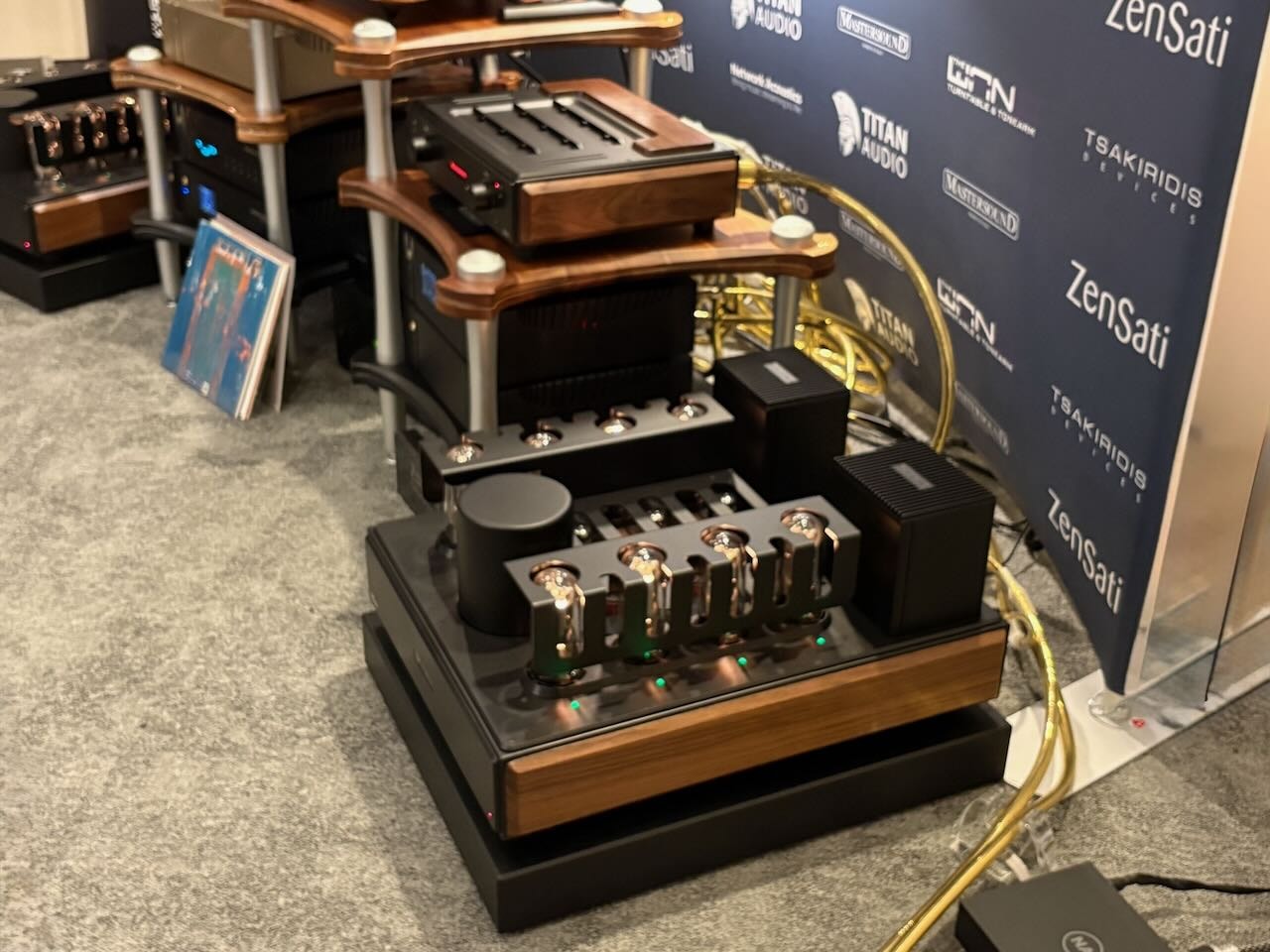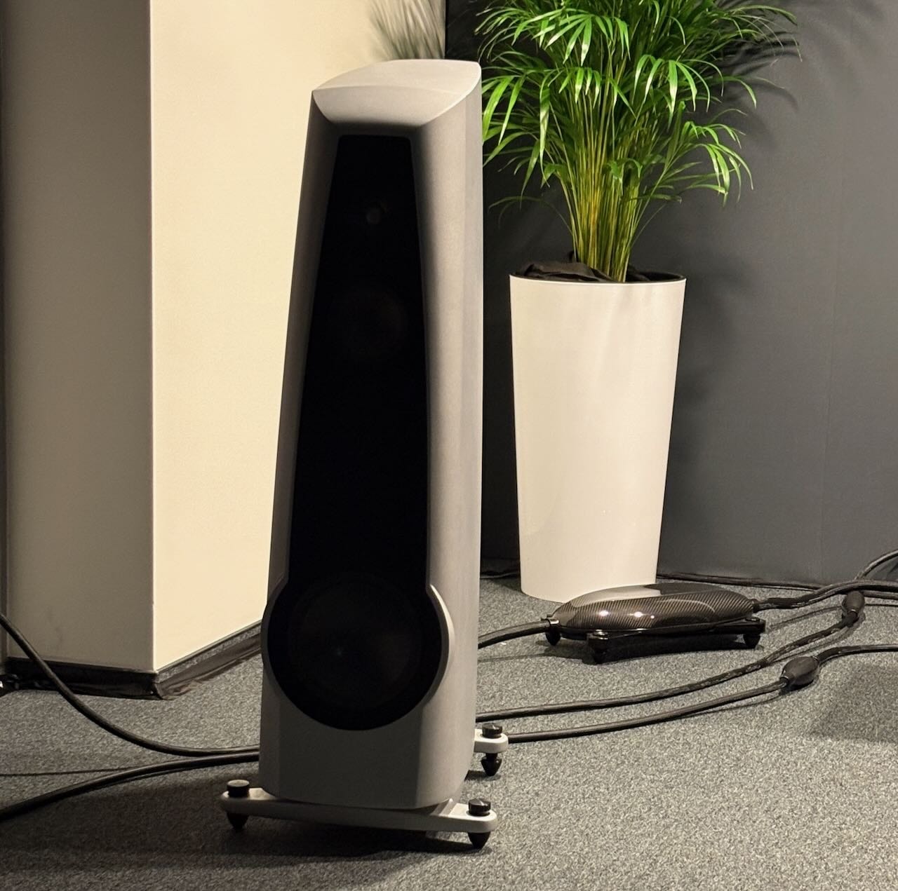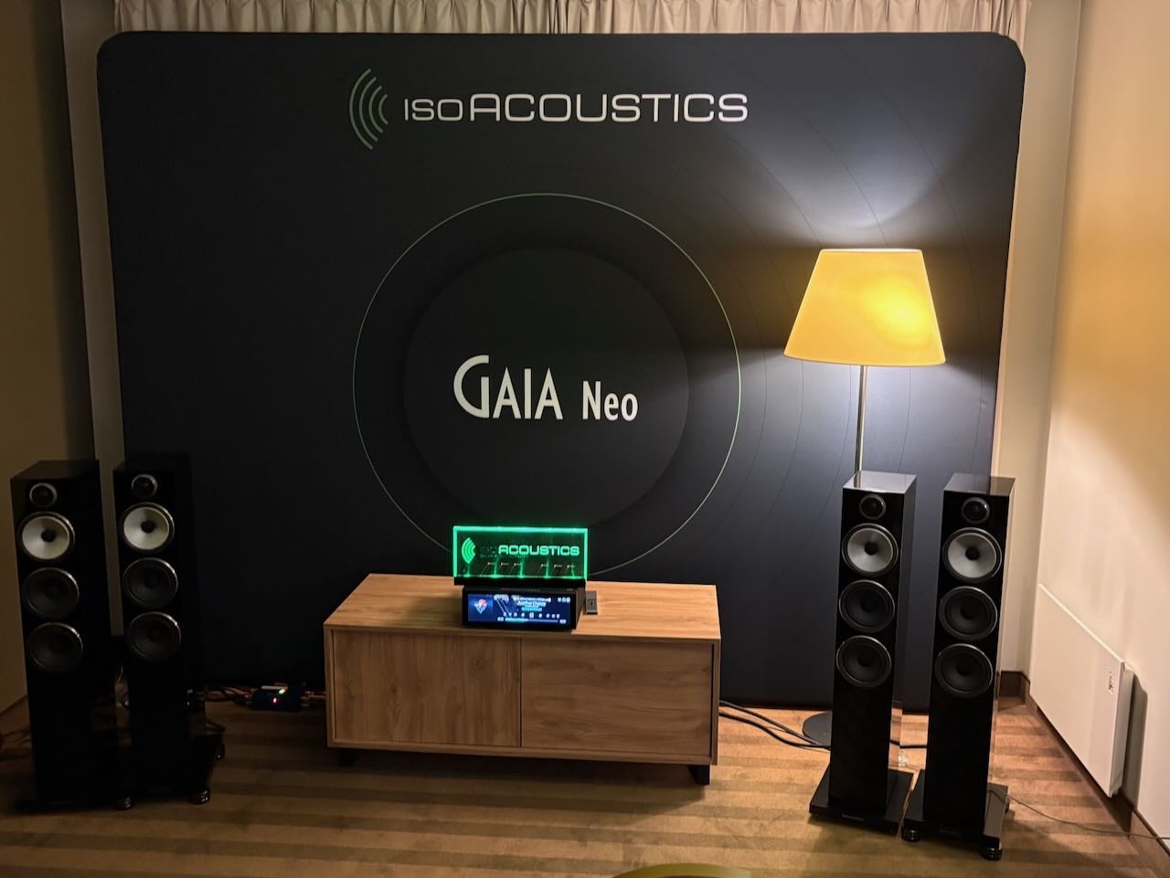 Die beste Vorführung von Isolatoren kam – wieder einmal – von Iso-Acoustics. Zwei idente Paare Lautsprecherboxen , einmal mit einmal ohne die neuen Gaia Füße. Hin und hergeschaltet zwischen den beiden konnte man den klareren Bass , die bessere Trennung und den Einfluss der Gaias sehr gut mitverfolgen.