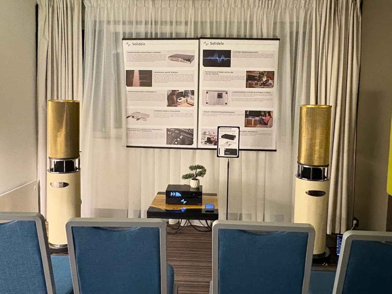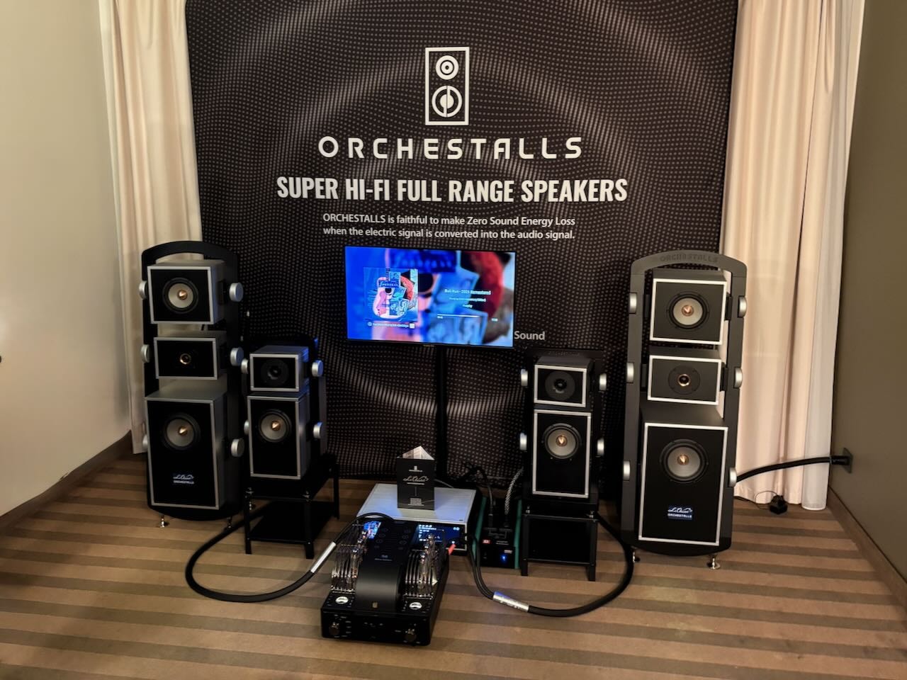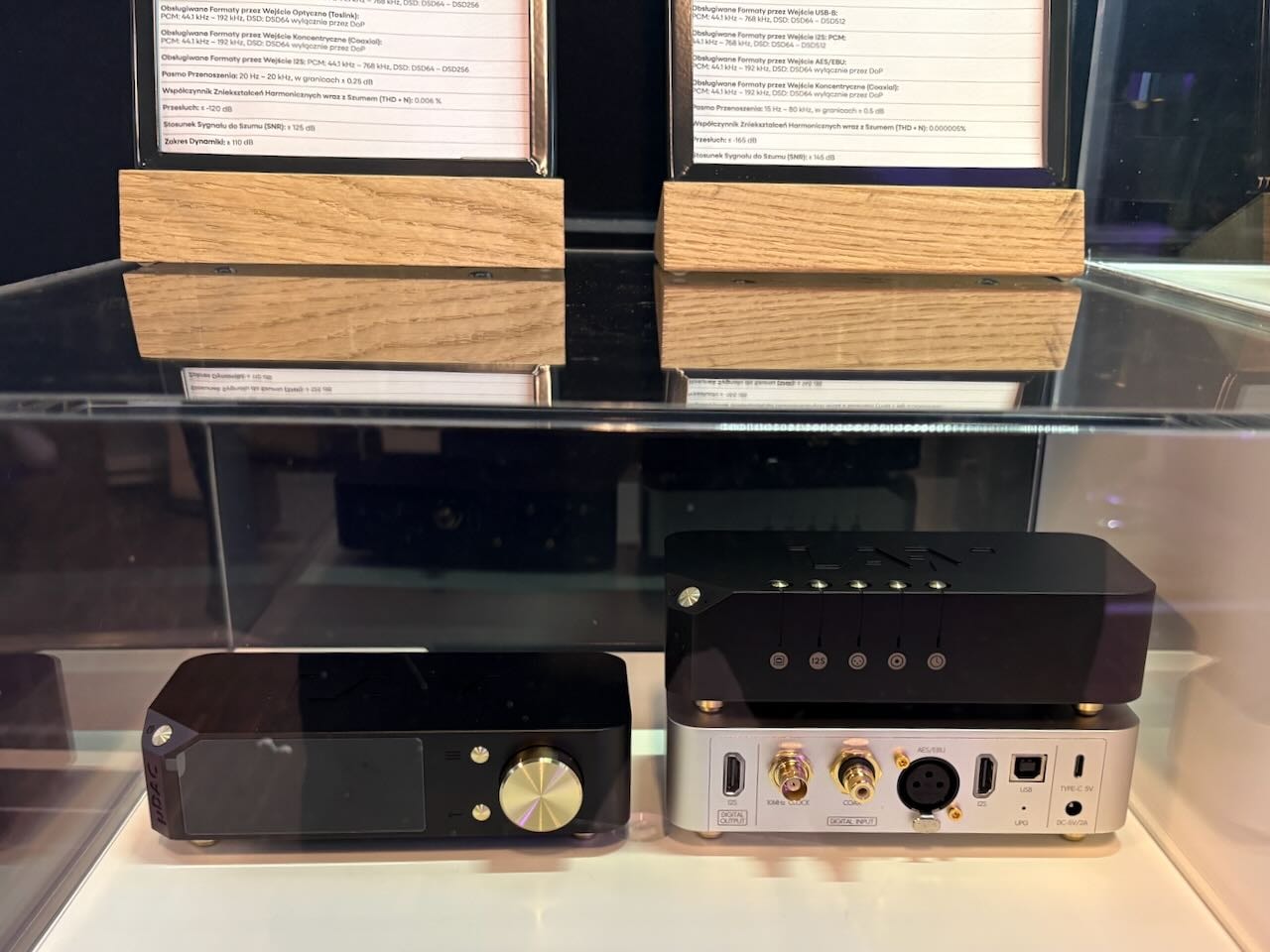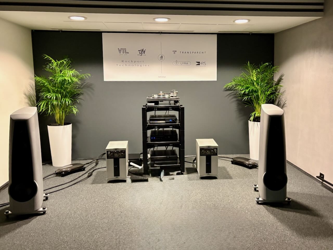 Die beste Vorführung von Isolatoren kam – wieder einmal – von Iso-Acoustics. Zwei idente Paare Lautsprecherboxen , einmal mit einmal ohne die neuen Gaia Füße. Hin und hergeschaltet zwischen den beiden konnte man den klareren Bass , die bessere Trennung und den Einfluss der Gaias sehr gut mitverfolgen.