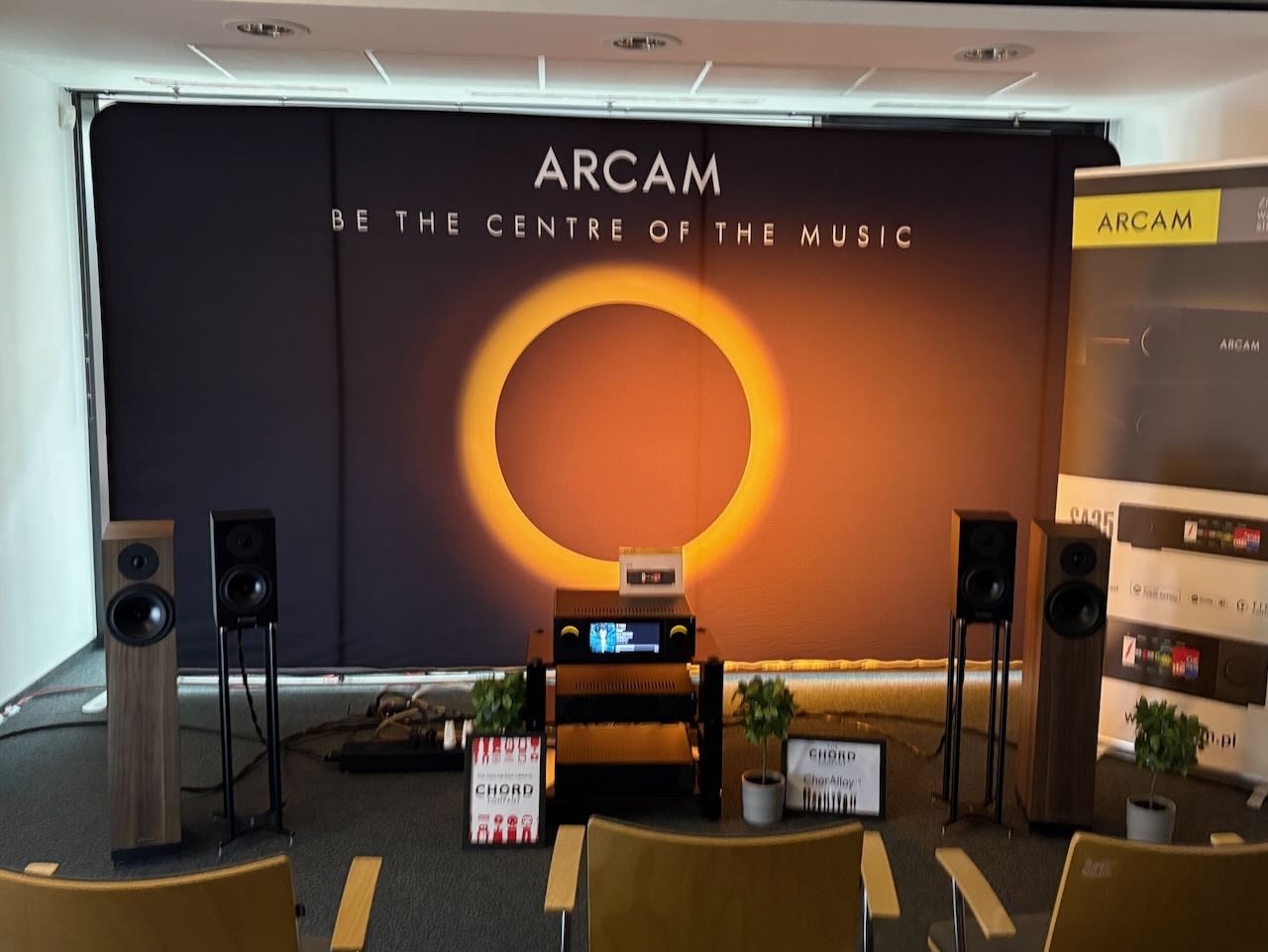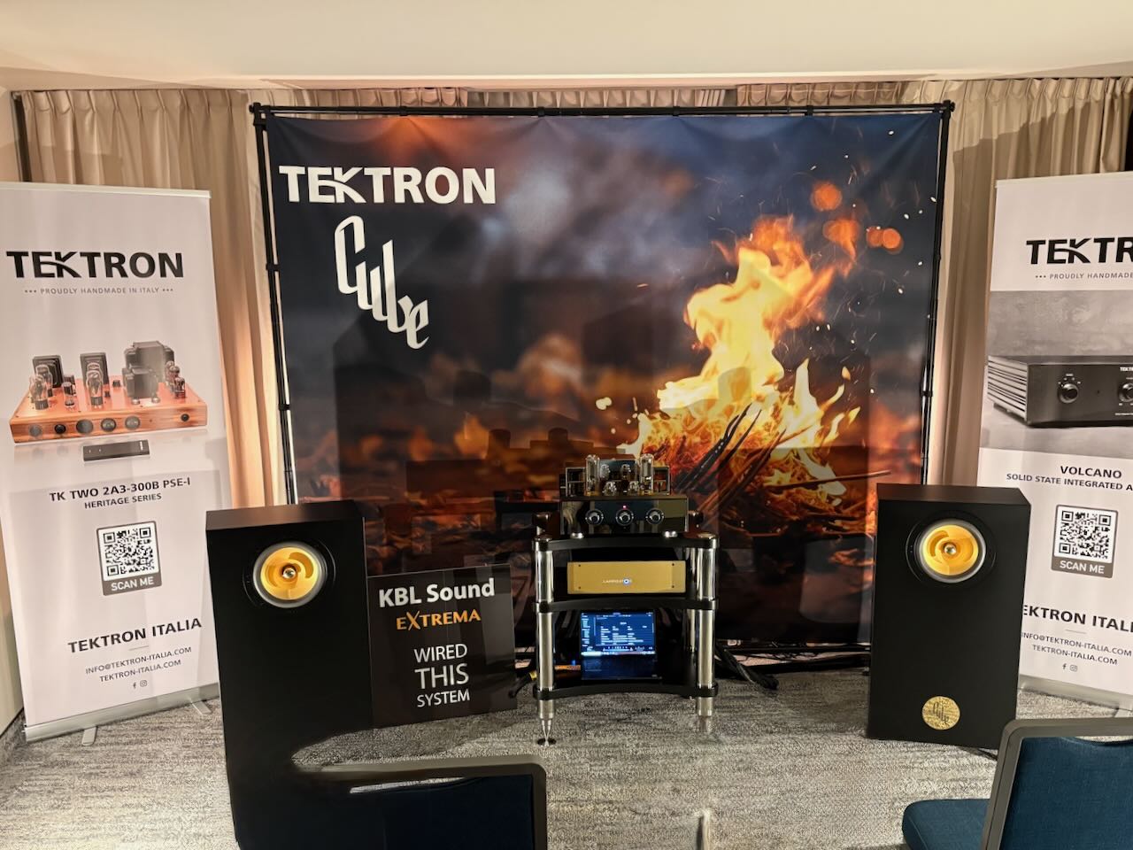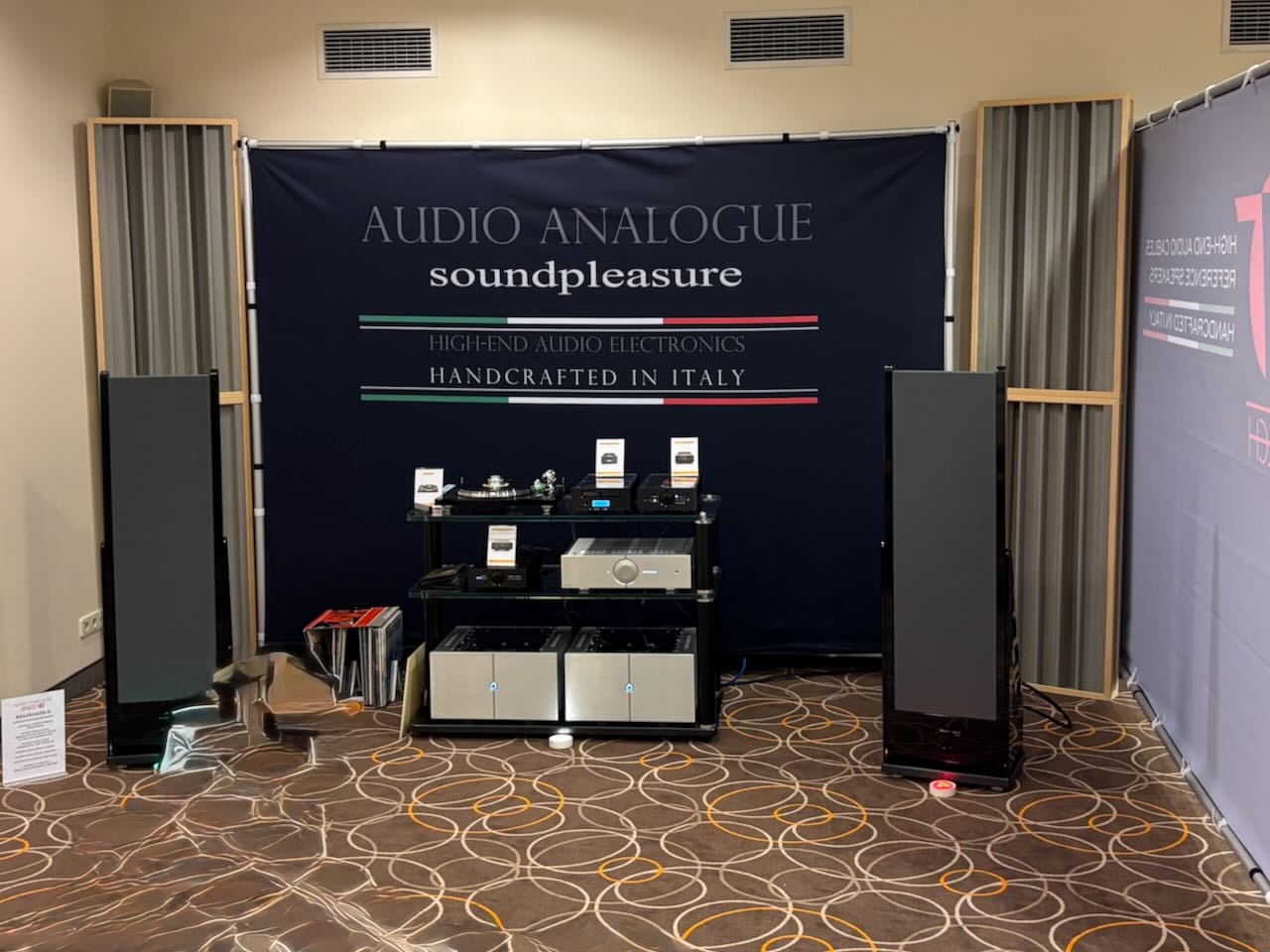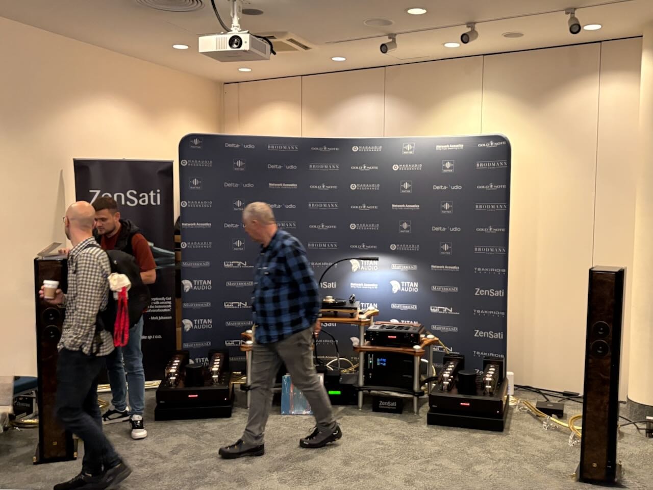 Die beste Vorführung von Isolatoren kam – wieder einmal – von Iso-Acoustics. Zwei idente Paare Lautsprecherboxen , einmal mit einmal ohne die neuen Gaia Füße. Hin und hergeschaltet zwischen den beiden konnte man den klareren Bass , die bessere Trennung und den Einfluss der Gaias sehr gut mitverfolgen.