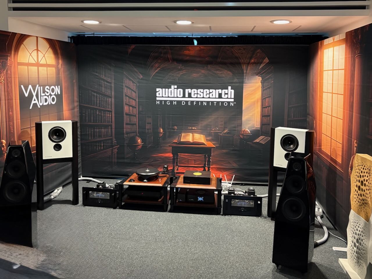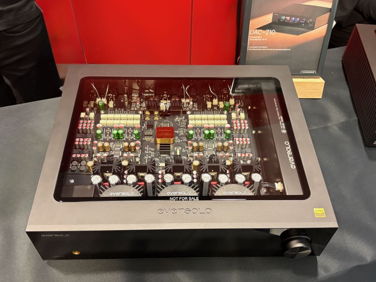 Gleich beim Eingang leuchtet mir der kleine LAIV µDAC entgegen, den man hierzulande leider nirgends hören kann. Ein R2R Dac bei dem alles nicht unbedingt nötige des großen Bruders Harmony DAC weggelassen wurde um einen attraktiven Preis um 1000€ zu realisieren, ohne die Klangqualität zu sehr zu beeinträchtigen. Gleich in der Nähe der neue Z10 DAC von Eversolo, der sogar dem A8 besseren Sound verschaffen können soll. Mit 3 (!) Netzteilen und extremer Dynamik. Auch etwa 1000.- € günstig, wenn er denn im November kommt . Das größte Erlebnis aber hatten wir gleich zu Beginn bei Audio Research . Diese Marke war am Beginn meiner HiFi-Leidenschaft das NonPlusUltra . Dann wurde es still, fast verschwand die Marke, gerettet von Investoren, aber ein zweiter Anlauf war nötig um den Phönix wieder aus der Asche zu ziehen. Unter der Ägide des besten Präsenters der heurigen Show mit Quelle von Grimm Audio Deutschland und Lautsprechern von Wilson Audio wurde die neuen Monoblöcke vorgeführt. „Sorry if thats not your music-taste“ als Einleitung , dann der Titel „Make us stronger“ von Ghost Rider . OMG!!! Die Saschas legen los, als wäre der Leibhaftige in sie gefahren. STARK, PRÄZISE, KRÄFTIG, absolut kontrolliert und mit Power, die ihresgleichen sucht. Fast meint man der Saft kommt aus den Poren der Wilson Audio Speaker. Monoblock, RÖHRE! Das „Berghain“ hätte seine Freude damit. Die Wiederkehr das Jahrhunderts.